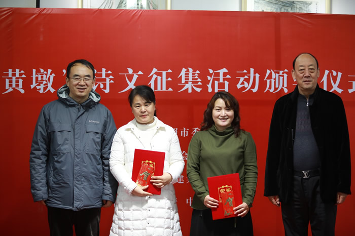 日照市作协副主席、著名作家刘加云,日建集团党委书记、董事长王太华,日照书院院长辛本亮,日建集团副总经理、日照市建筑协会秘书长张磊参加颁奖仪式。(社日照市委 赵英华)