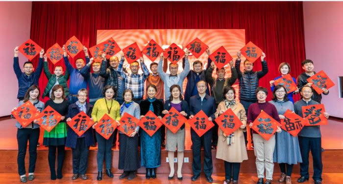 九三学社青岛书画院的部分书画家挥毫泼墨现场为社员们送“福”,营造了喜庆祥和的氛围。