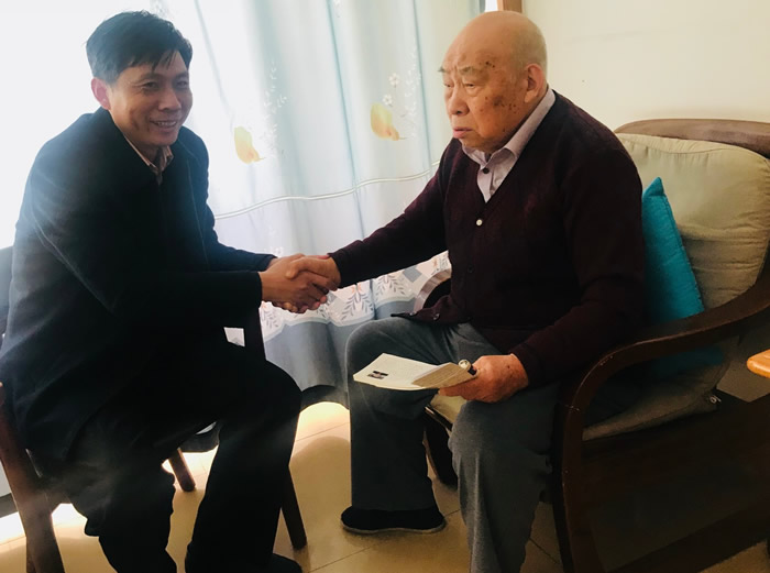 在老社员家中,燕德华、张保国副主委与老社员促膝谈心,关切询问他们的身体状况好生活情况,向他们介绍社市委过去一年的各项工作和取得的成绩。燕德华副主委说,东营九三各项成绩的取得离不开老同志的关心和支持,希望老同志保重身体,愉悦身心,继续关心和支持东营九三的发展,多提宝贵意见和建议,为东营九三谱写更加出彩新篇章献计献策。