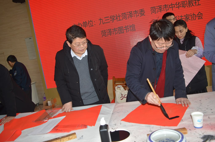 2020年1月15日,九三学社菏泽市委员会联合菏泽市中华职教社、菏泽市图书馆、菏泽市书法家协会共同举办送书法文化下乡,走进菏泽市图书馆活动。
