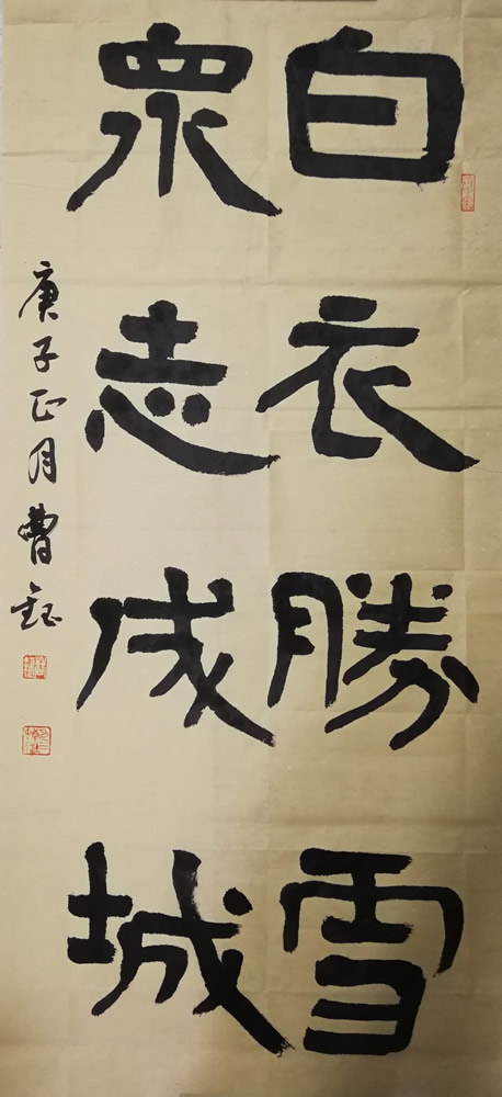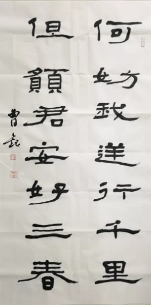 曹钰主委与中国书协会员、菏泽市书协原副秘书长娄尚坤相约一起,秉持“凭一技之长,尽绵薄之力”的初心,联袂举行书法作品网络义卖活动。他们各自创作了10幅精心之作:“白衣胜雪、众志成城”、“试问大海碧波,何谓以身许国,青丝化作白发,依旧铁马冰河”、“德风清至骨,道义难辞肩”……一幅幅饱含爱心的书法力作,诉说了他们的心声。