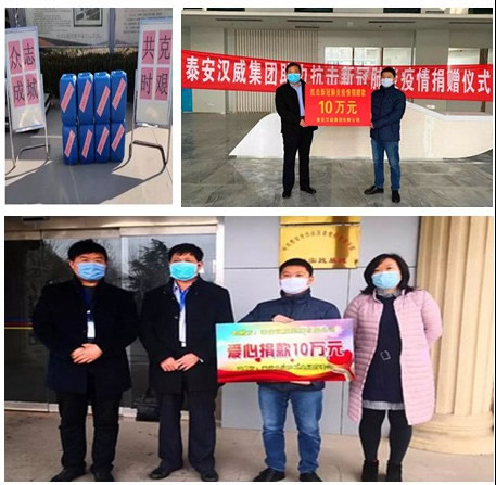 在与疫情的生死较量中,时间就是生命。很多青年社员第一时间行动起来,尽己所能捐款捐物,助力疫情。泰安社员孙桂彬面对严峻的疫情,立即组织汉威集团开展自产自救,协调专业人员配制消毒液,及时将460份消毒液和75%消毒酒精派送到员工家中,并向满庄镇政府捐赠450公斤消毒液、550公斤75%消毒酒精、58套专业防护服、35副护目镜,解决了周边社区防控物资紧缺的燃眉之急;向大汶口工业园区内的铁鹰建设、一开集团等9家企业捐赠了500公斤消毒液和500公斤75%消毒酒精,为园区复产复工助力加油;2月14日再伸援手,向岱岳区妇幼保健院和满庄镇慈善协会各捐赠了10万元。