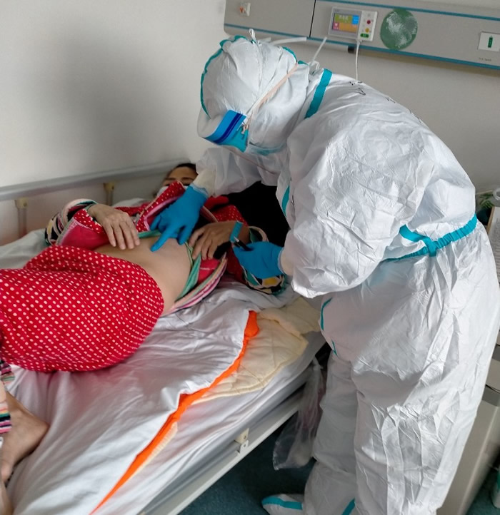 病区里的患者均为重症或危重症,又离开了熟悉的环境和家人的陪伴,其内心的焦虑与惶恐可想而知,因此积极的医患沟通非常重要。陈海荣从医近20年,曾经历了“非典”疫情,并先后在影像科、呼吸科、传染科及目前的重症监护室工作,接触过各种呼吸道传染病人及危重病人,积累了丰富的医治经验和有效的心理抚慰措施。面对受病痛折磨的病人,她始终把医疗队“除了尽量医治,还要更多给予同情和心理疏导的医疗理念”贯彻到自己工作的点滴中。查房时,她会尽量离病人更近一些,使之感受到亲近、放松,“很多时候自己身体略微向病人倾斜一下,病人的面部表情就会舒缓很多”;沟通中,她会努力克服笨重防护服的束缚,适当运用肢体语言,尽可能多地用自己的举止让病人感受到她的关心;离开时,她会鼓励患者继续努力,告诉他们期待明天见到更棒的他(她)。病房里曾住过一个有高血压和糖尿病史的中年女性患者,此次确诊新冠肺炎后病情危重,多病并重导致其必须借助无创呼吸机辅助通气治疗,为此患者一度丧失信心与勇气,不想再继续坚持下去,这时候陈海荣和其他医护人员每次查房时都会与她多聊一会儿,告诉她又有重症病人转危为安了,跟她聊一聊孩子和家人……不断的交流鼓励让她的精神逐渐振作起来,病情也逐渐好转,她们之间也建立起一种特殊的“友情”。