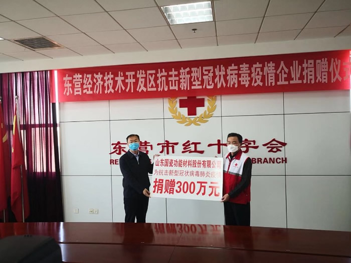 社员司留启任副总经理的山东国瓷功能材料股份有限公司,代表公司向东营区红十字会捐款300万元。东营基层委副主委、市海通房地产公司总经理张洪涛向东营市红十字会捐款20万元。市直一支社副主委、东营利泽化工有限公司总经理闫雷向河口区仙河镇慈善总会捐款10万元。