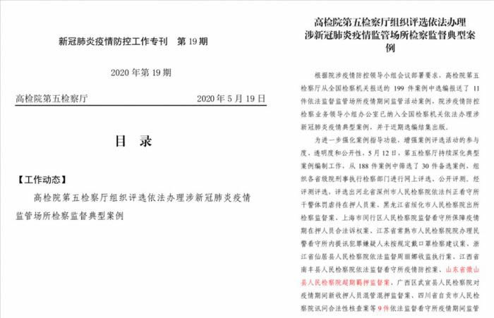 5月19日,在最高检组织全国范围内评选办理涉新冠肺炎疫情监管场所检察监督典型案例活动中,济宁九三学社社员、微山县检察院第三检察部副主任满忠龙办理的超期羁押监督案被评为典型案例。该案是微山县检察院建院以来首个入选最高检指导性案例的案件,也是本次活动中代表全省检察机关唯一入选的刑事类指导性案例。