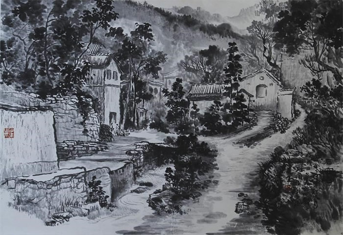 23/峨庄山村(作者:张建生 作品分类:中国画)