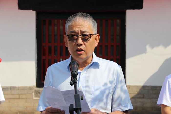 李传恒代表九三学社潍坊市委向创作制作并捐赠张雪岩先生铜像的九三学社社员、我国著名工艺美术大师、十三届中国民间文艺山花奖获得者傅绍相先生表示感谢,并为他颁发捐赠证书。