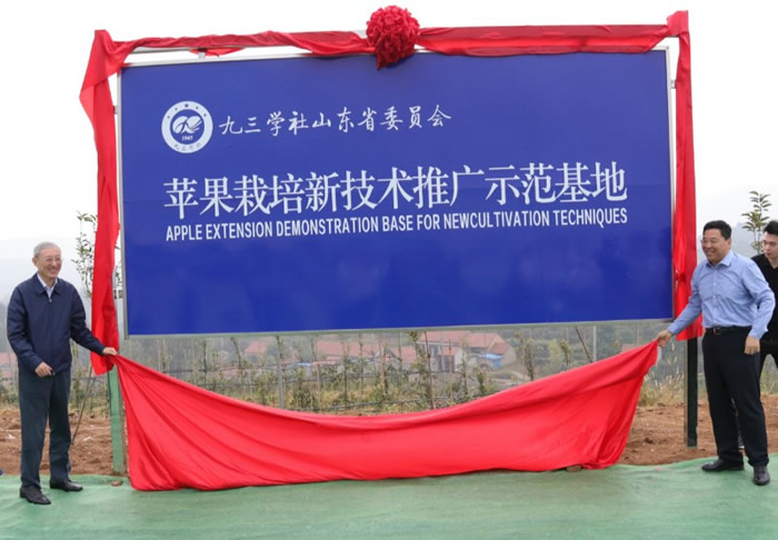 程林主委为沂源县张家坡镇“苹果栽培新技术推广示范基地”揭牌