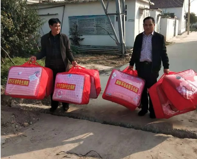 王浩宇在工作之余,热心社会公益,响应党和政府号召,主动参与乡村精准扶贫工作,此次捐赠的棉被分别发赠给兴隆镇大棠树村、任庄村、魏店村共50户低保家庭,为助力兴隆镇全面打赢脱贫攻坚战做出积极贡献。(九三学社济宁市委供稿)