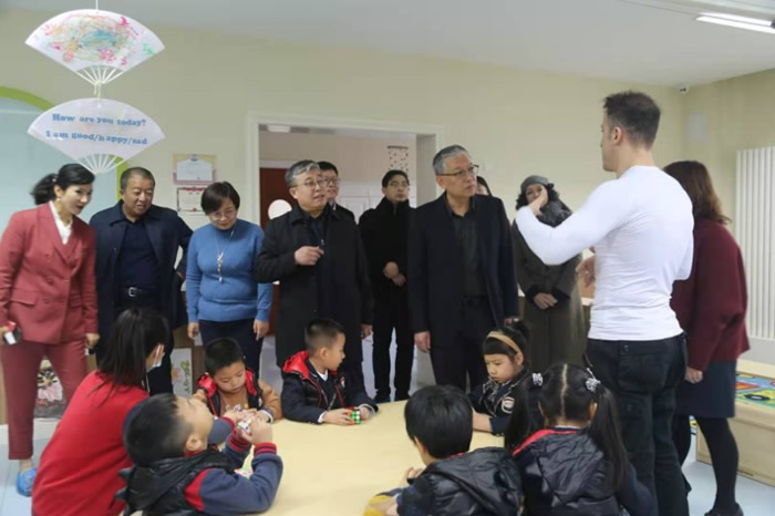随后,调研人员一行参观了幼儿园。园所的设施、设备的采购均以“自然、绿色、安全、环保”为标准,结合中国教育部《3-6岁儿童学习与发展指南》及借鉴国际上IB先进的教学理念、英国EYFS评估体系,落地中国,形成了园所特色大主题探究课程。在参观调研过程中,园所设施的现代化、人性化、标准化和学生所表现出的热情大方与自信给调研人员留下了深刻的印象。