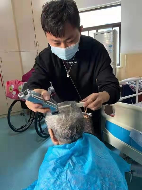 走进老年公寓,大家为老人们送上了水果、熟食礼盒等生活物质,并陪老人们唠家常,关心询问老人们在生活、健康等方面的具体情况,嘱咐他们天气日渐寒冷注意保暖。此次公益活动还得到了Rainbow hair理发店的友情赞助,店长带领发型师为老人们义务理发,让老人们真切感受到关爱和温暖的贴心服务。