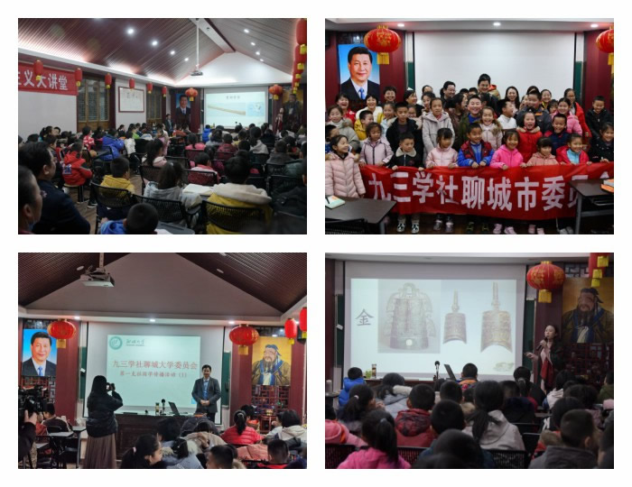 近日,九三学社聊城市委联合社聊城大学委员会及第一支社主办“讲好中国故事”讲座。讲座主题为“从古代神话看中华民族精神”,聊城大学文学院宁登国副教授、音乐学院尹蕾副教授主讲。九三学社聊城市委专职副主委魏立广、秘书长吕爱红以及国学研究与传播促进会义工和中小学生共100余人参加了此次国学宣讲活动。